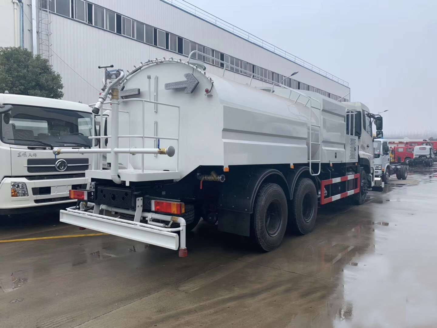 | 其他 | 此車為路面清洗專用車,專用裝置為高壓水泵,噴**.此車前伸為(mm):980.介質:水,密度:**0千克/立方米.罐體有效容積:12.6立方米, 罐體尺寸(mm): 5080×2350×1550,外形長/軸距/后懸對應關系為(mm):10500/4350+1350/2340,11500/5350+1350/2340,11850/5700+1350/2340,9950/3800+1350/2340. 防護材料:Q23**碳鋼,連接方式:左右側面及后下部防護均采用焊接連接,后下部防護斷面尺寸(mm):120×50,后下部防護離地高度(mm):480, ABS生產廠家:東科克諾爾商用車制動系統(十堰)有限公司;型號:3631010-C2000.隨底盤選裝駕駛室. | ||
