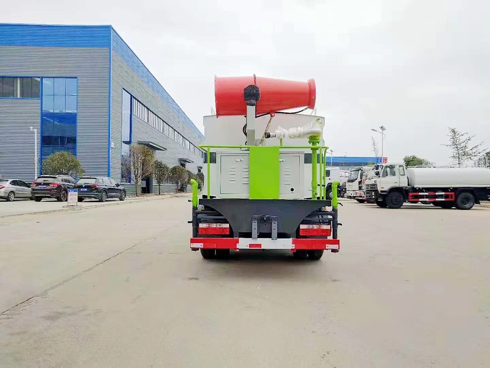 | 配置說(shuō)明 | 霧炮機(jī)具有自主**技術(shù),**號(hào)為(201621305361.8 / 201630487869.3),十五年制造經(jīng)驗(yàn),產(chǎn)品全面通過(guò)湖北省及本地質(zhì)檢局檢驗(yàn)合格,可根據(jù)需求選配不同的射程規(guī)格,可遠(yuǎn)程無(wú)線遙控操作作業(yè),采用國(guó)內(nèi)外知名發(fā)電機(jī)組及風(fēng)扇電機(jī)、電控系統(tǒng)、大功率水泵。抑塵車(chē)具有灑水車(chē)的全部功能:前部沖洗路面噴灑裝置、后部扇形降塵噴灑裝置,兩側(cè)噴灑裝置,后部大工作平臺(tái)、平臺(tái)上安裝綠化灑水炮(炮噴射形狀可調(diào)),可調(diào)直沖狀、大雨、中雨、毛毛雨,可連續(xù)調(diào)節(jié),其它:自流閥及消防接頭、水管3米2根,罐體防腐處理。 | |