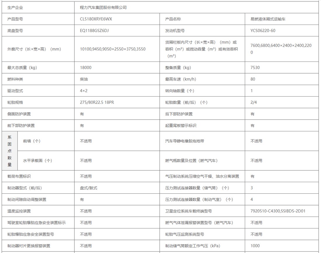東風錦程6米8易燃液體廂式運輸車